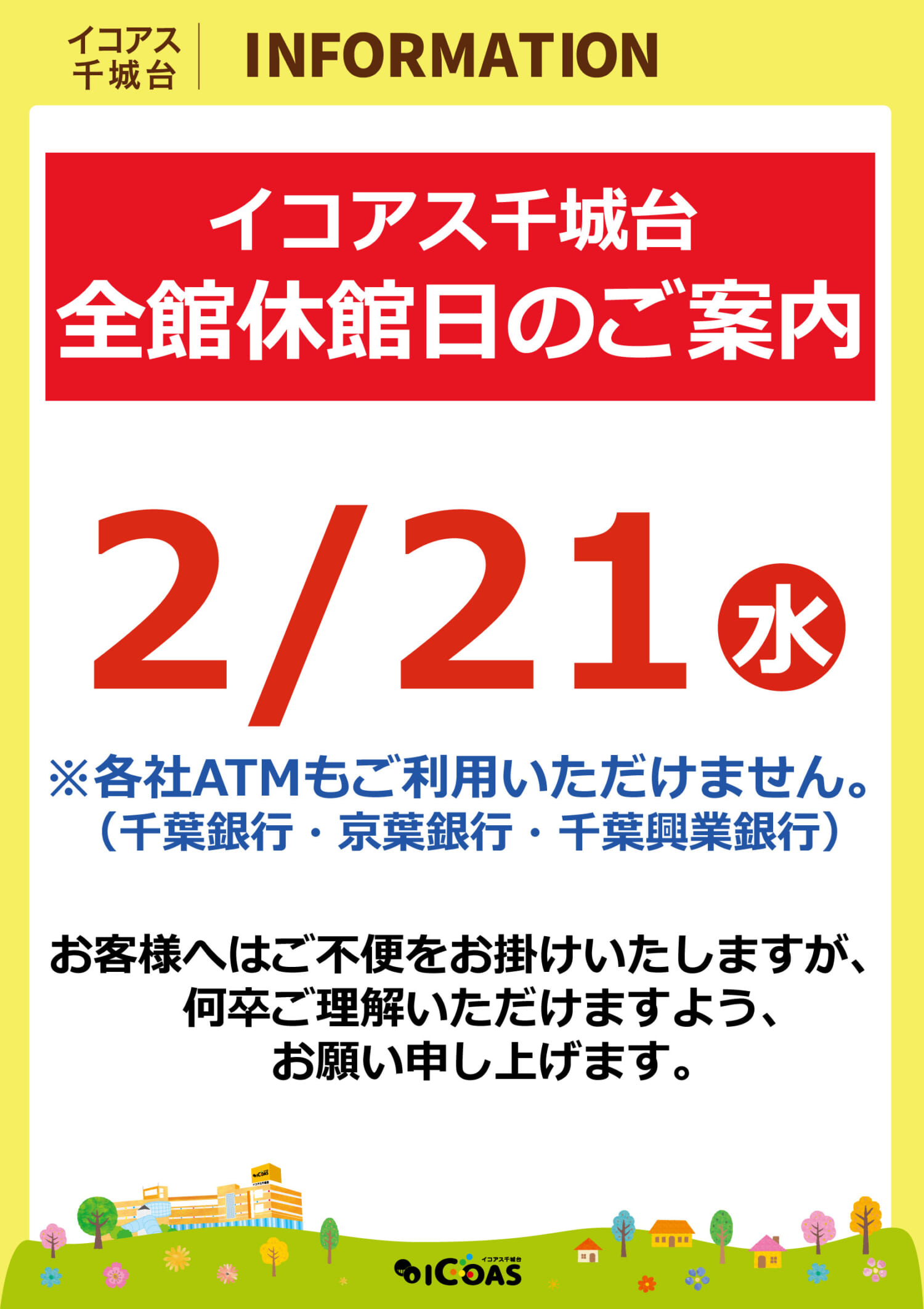 誠に勝手ではございますが、法定設備点検のため下記日程は全館休館とさせていただきます。