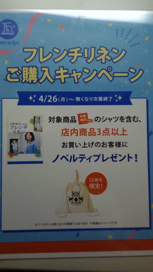 4/26~フレンチリネンシャツご購入キャンペーンを行っております♪