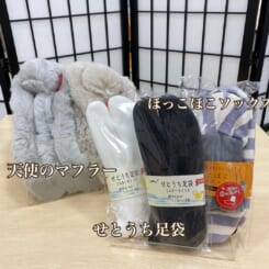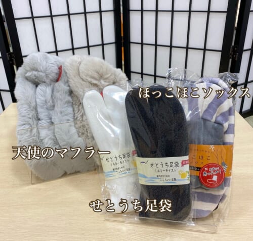 マフラーや足首まで暖かく履いて頂ける靴下などもございます♪