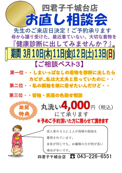 お持ちのお着物について、悉皆の先生と直接ご相談可能!