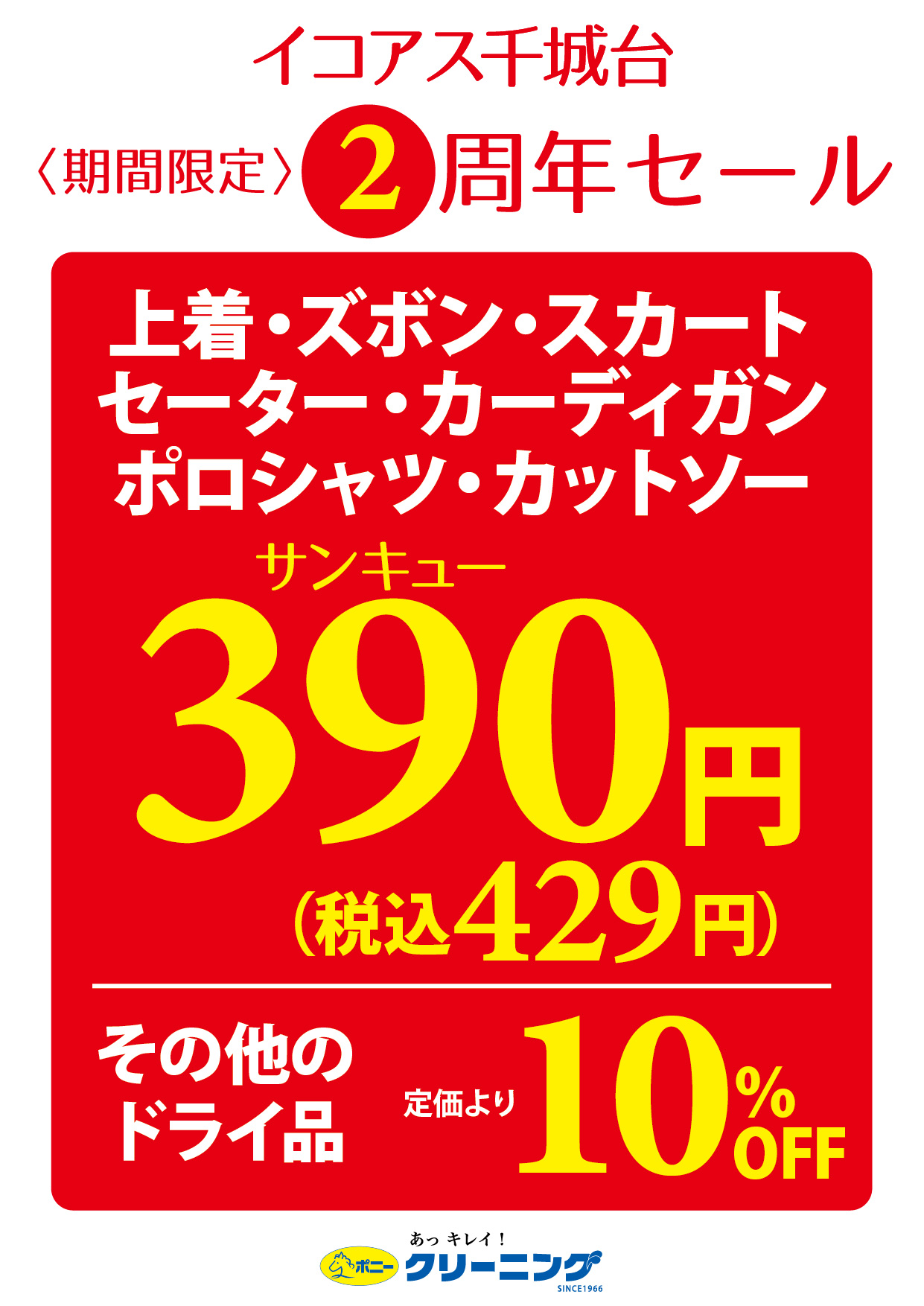 サンキューセール延長決定! ポニークリーニング 3年前 ポニークリーニングです🐕 現在実施中の390円セール、 好評につき延長が決定しましたっっ ! 9月26日(月)までになります♩ この機会に是非ご来店お待ちしております🐾