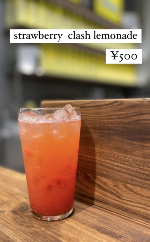 クラッシュした甘酸っぱいイチゴの果肉🍓とライムジュースをアクセントに効かせることで夏にピッタリな爽やかな味わいのレモネードになっています‼︎