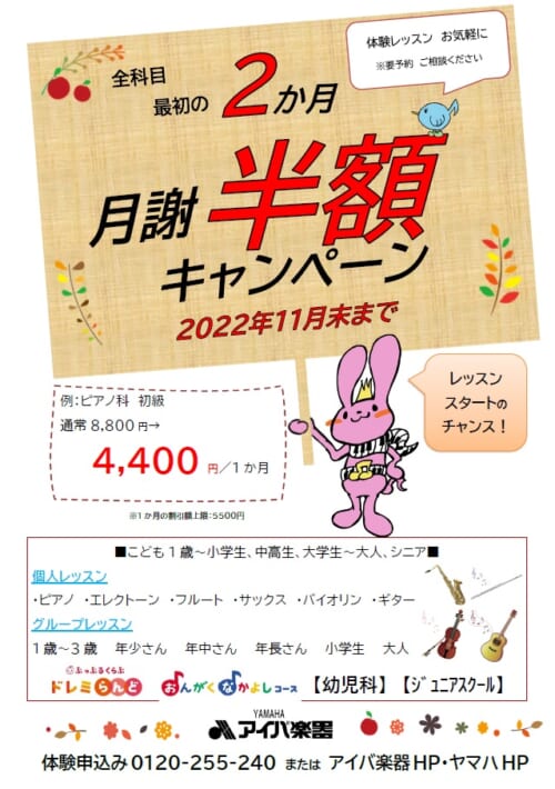 月謝半額キャンペーン実施中!