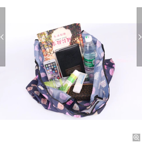 ポリエステル素材で軽く、小さく折りたためるのでバッグの中でもかさばりません。