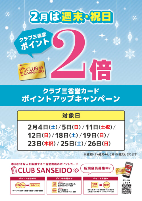 三省堂書店 2月の土日祝はポイント2倍キャンペーン