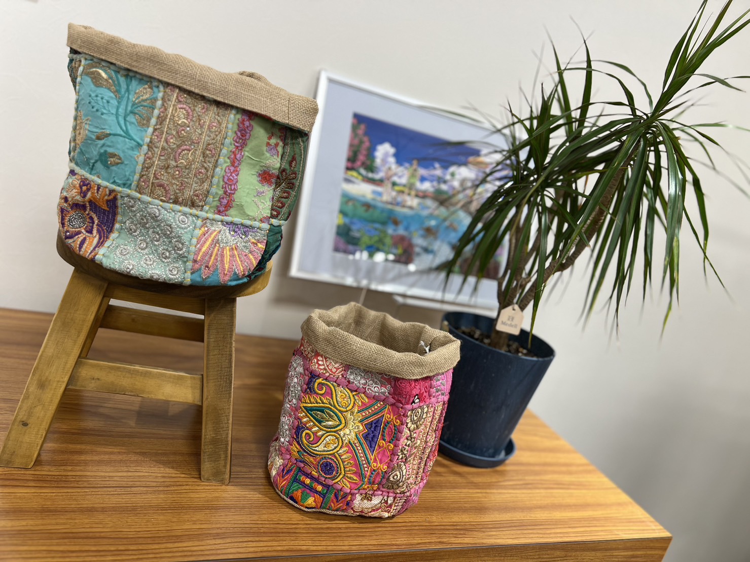 インド直輸入、、ザリ刺繍のバケツ型マルチカバー😍