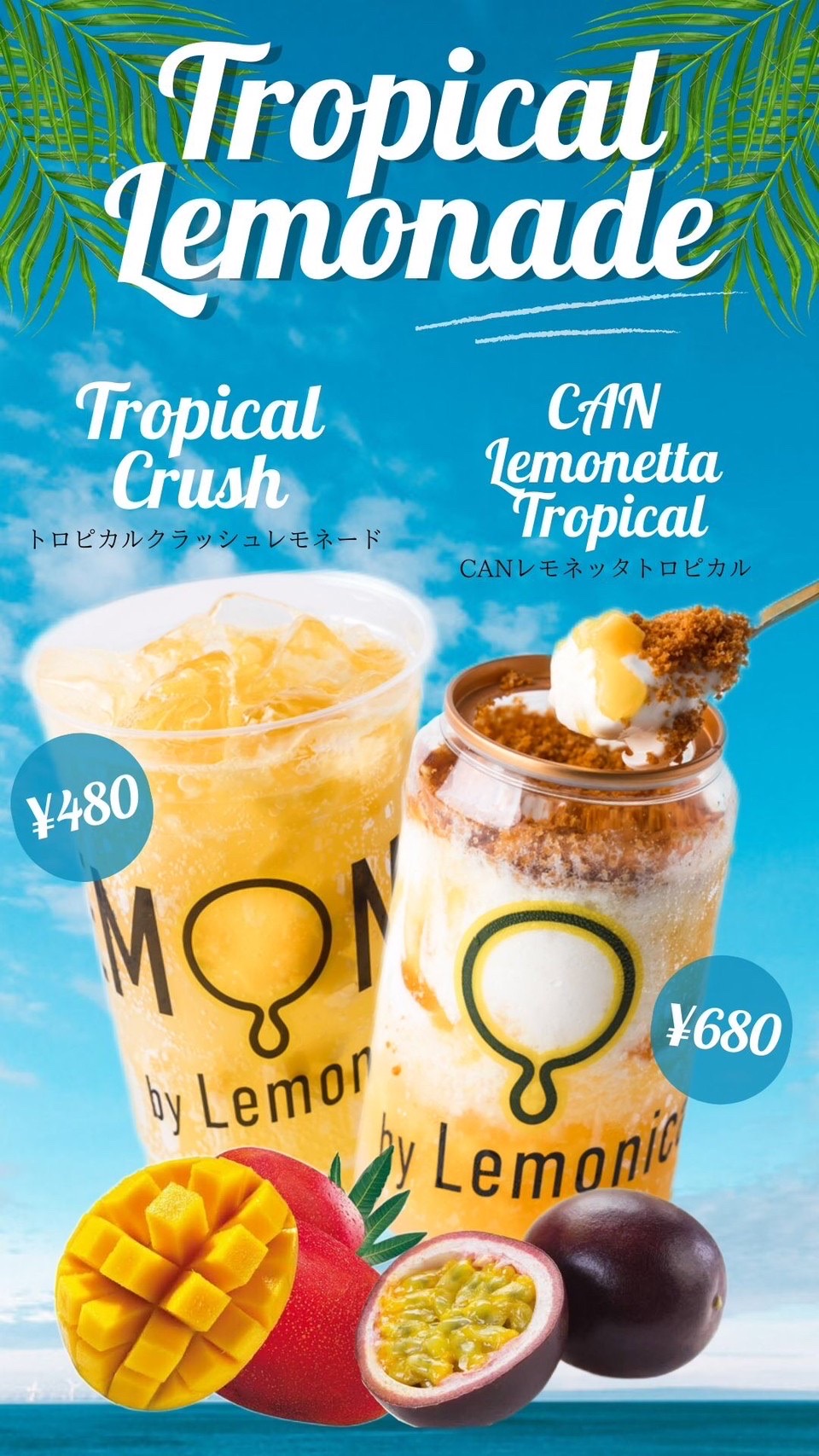砕いたマンゴーの果肉とパッションフルーツのソースを合わせ、トロピカルな酸味とレモネードの優しい甘さを感じるドリンクです🌻