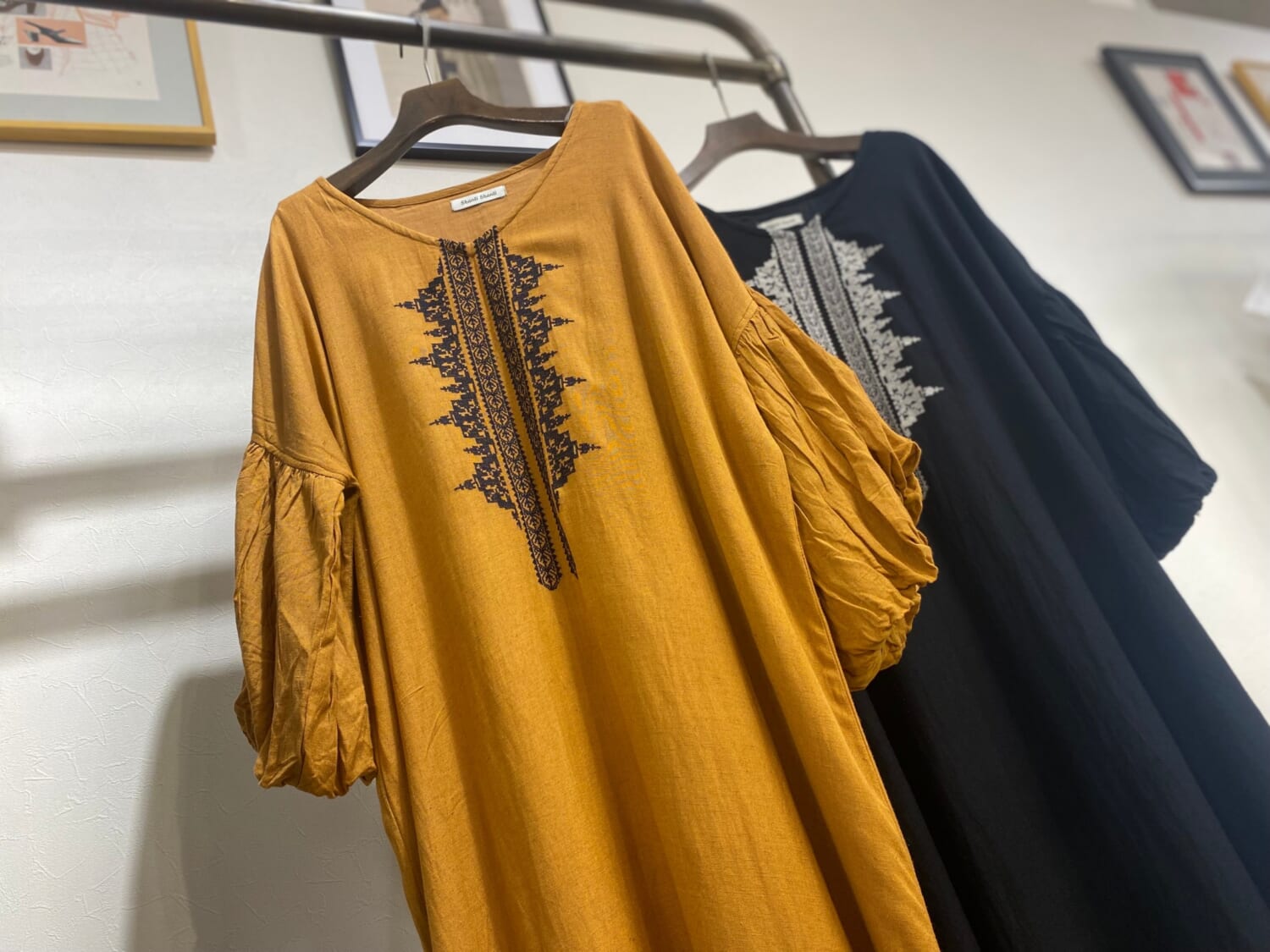 とろみ感のあるレーヨンとシャリ感のあるリネン混の心地よい生地に、繊細なクロスステッチ刺繍を施しました。シンプルなモノトーンカラーで着やすく、日常に取り入れたいシリーズです🍂🎃