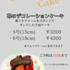 「ルシャポ」ホールケーキのご予約も引き続き承っております!!
