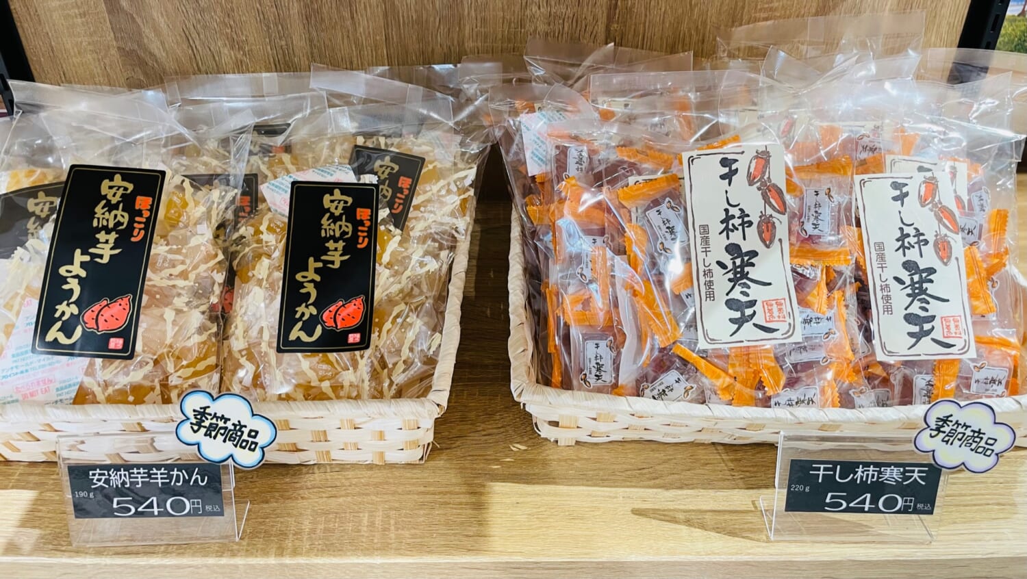 季節限定商品第2弾入荷しました♪ 大川園 2年前 季節限定商品がまたまた入荷しました♪ ほっこり安納芋羊かんと干し柿寒天です! こちらの商品も毎年好評をいただいている商品です。 おいしいお茶と季節のお菓子で 秋の夜長を過ごしませんか? スタッフ一同皆様のご来店をお待ちしております。
