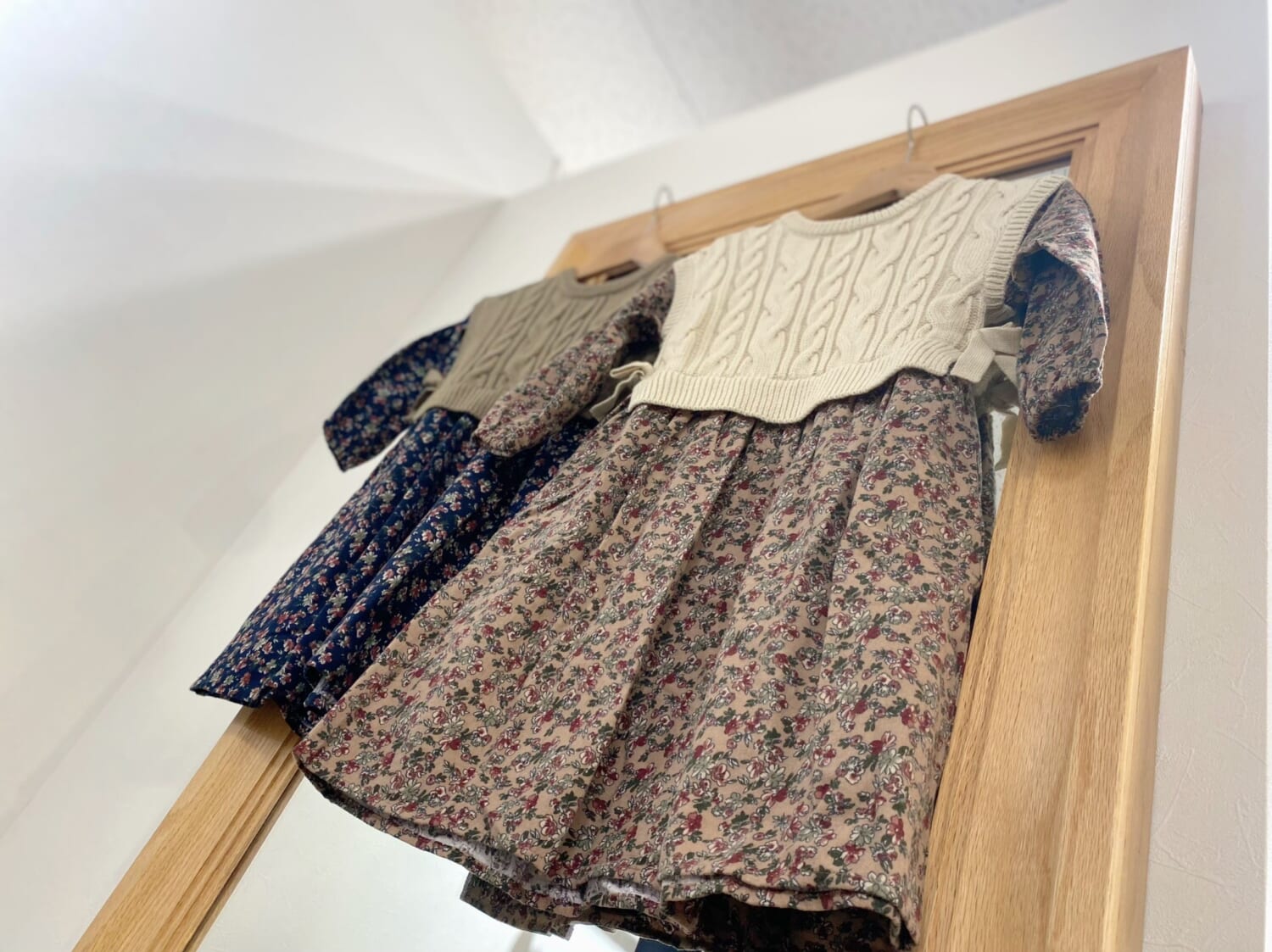 - ケーブルニットと花柄のコンビネーションが斬新な