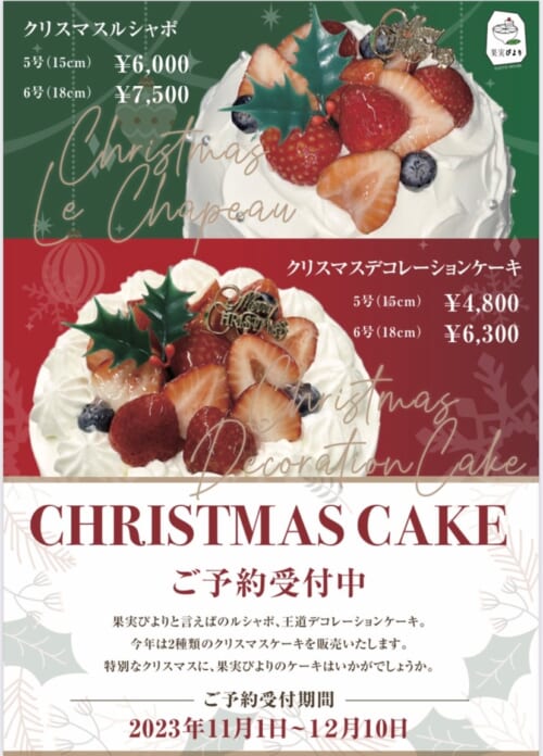 2023年の果実びよりのクリスマスケーキは...