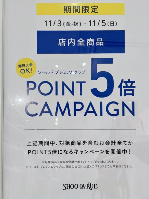 上記期間にワールドプレミアムクラブお持ちのお客様、新規入会のお客様限定でポイントが5倍付与されます!!