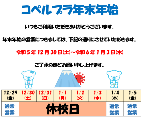 コペルプラス イコアス千城台教室から年末年始のお知らせです✨