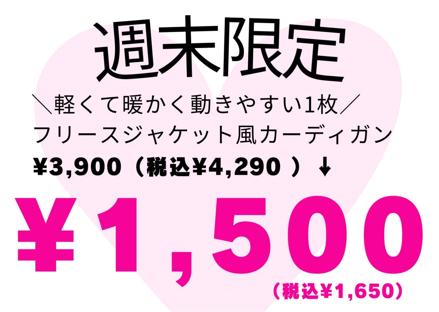 週末限定割引😄第一弾!! エコモマイ 2年前 こんにちは😄 エコモマイ千城台店です🌈 本日は週末限定割引商品お知らせです😍 人気のフリースジャケット風カーディガンが、 大幅お値下げーー❤️ この機会に、ぜひエコモマイでのショッピングをお楽しみください🌴 ご来店心よりお待ちしております🌺
