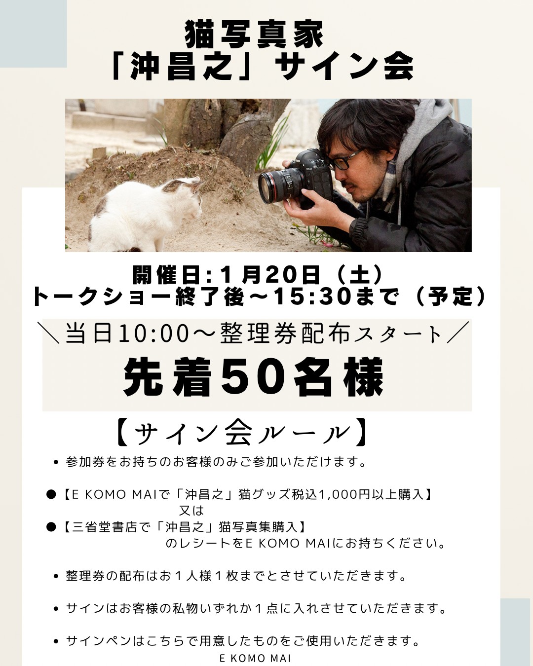 猫写真家「沖昌之さん」によるサイン会を開催いたします。
